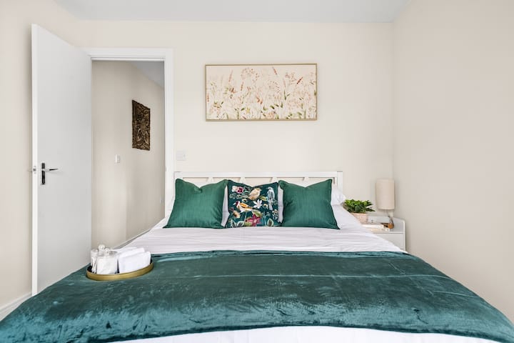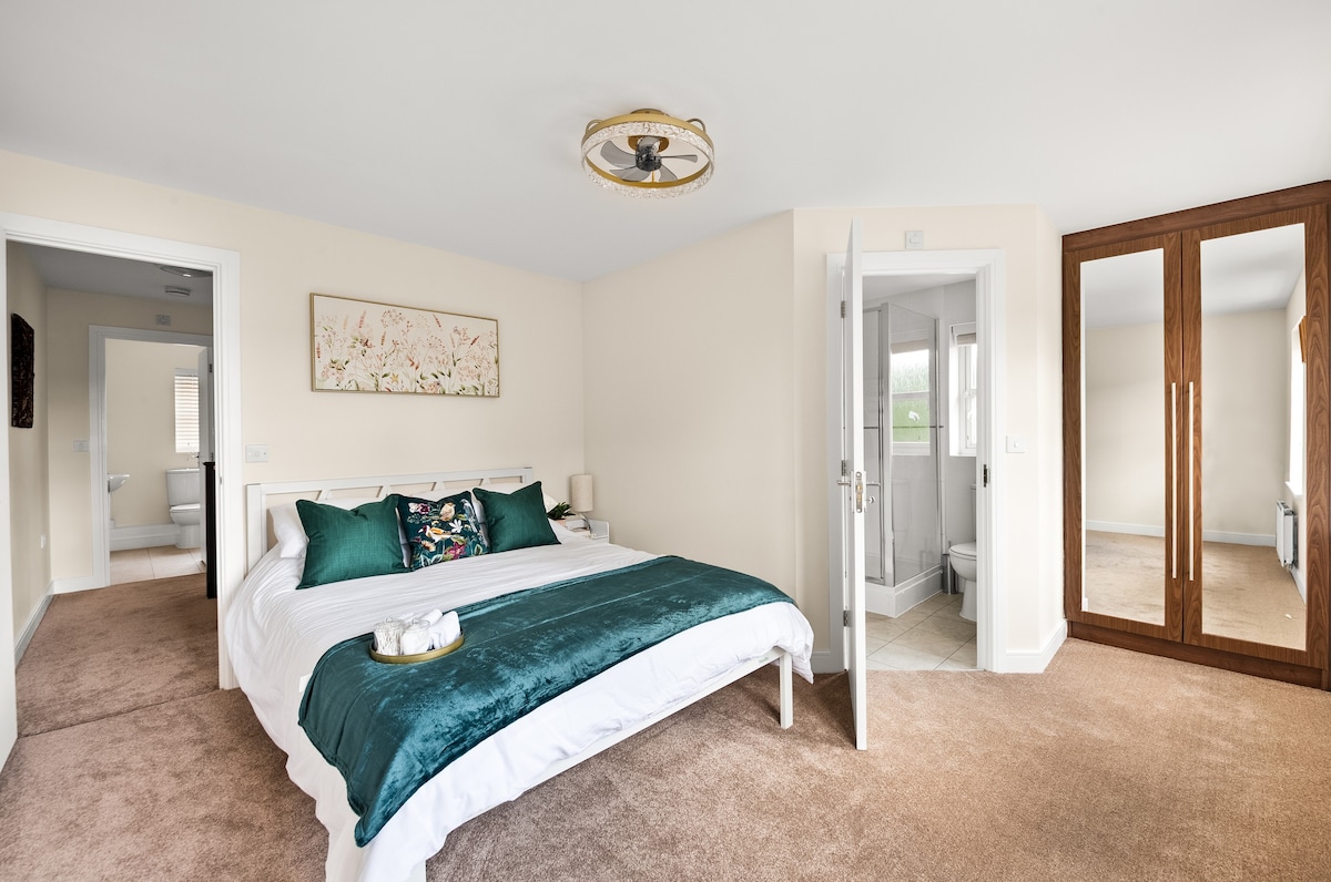 Your haven awaits! Our master bedroom boasts a plush king-size bed, designed to melt away the day's stress and ensure a restful night's sleep. Wake up feeling refreshed and ready to explore all that Slough has to offer.